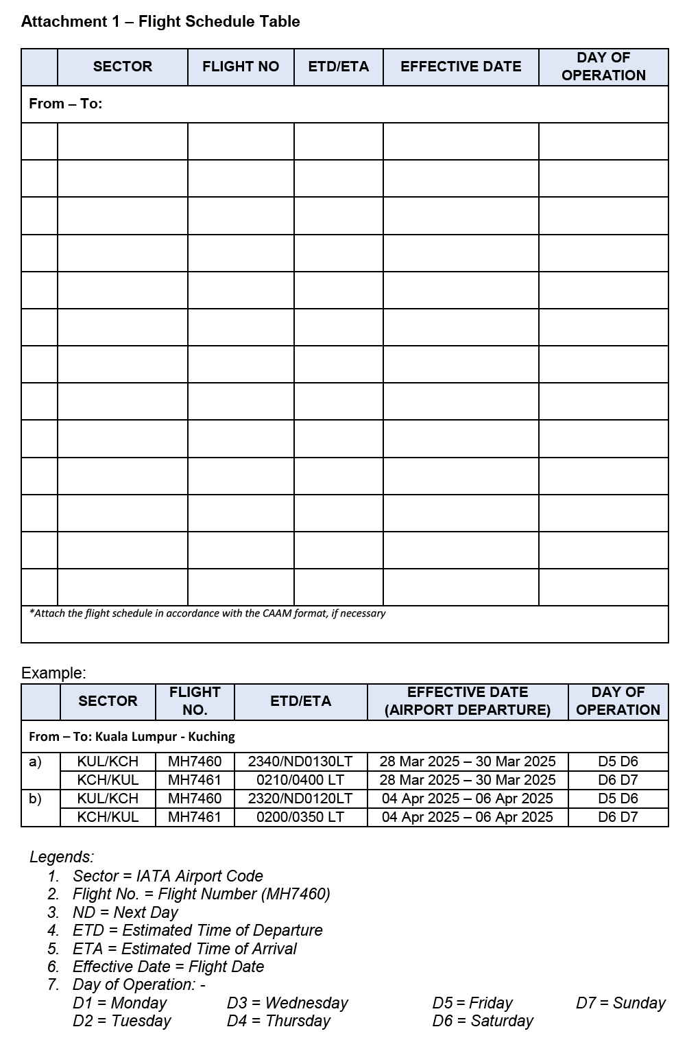 3.3 Air operators are responsible for liaising with relevant aerodrome operators and other agencies (CIQ; etc) to secure extension of aerodrome service. This is to ensure that all necessary coordination with relevant parties (NSCM-MAHB; etc) has been done and approved before submitting request to CAAM.