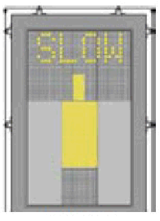 SLOW DOWN (DECREASE SPEED) The Safedock system is configured with a slowdown active zone. The limit speed for slow down indication is configurable per aircraft type in the 0 - 10M range from the stop-position, with a default setting of 2m/s. The limits further out are fixed: 10 - 20M3m/s; more than 20M 4m/s. Note: A speed of 2m/s is approximately 7km/h, 4 mph or 3 knots. If the aircraft is approaching faster than the accepted speed, the system will show SLOW as a warning to the pilots. | ![]() | Pilot to decrease the aircraft speed. |