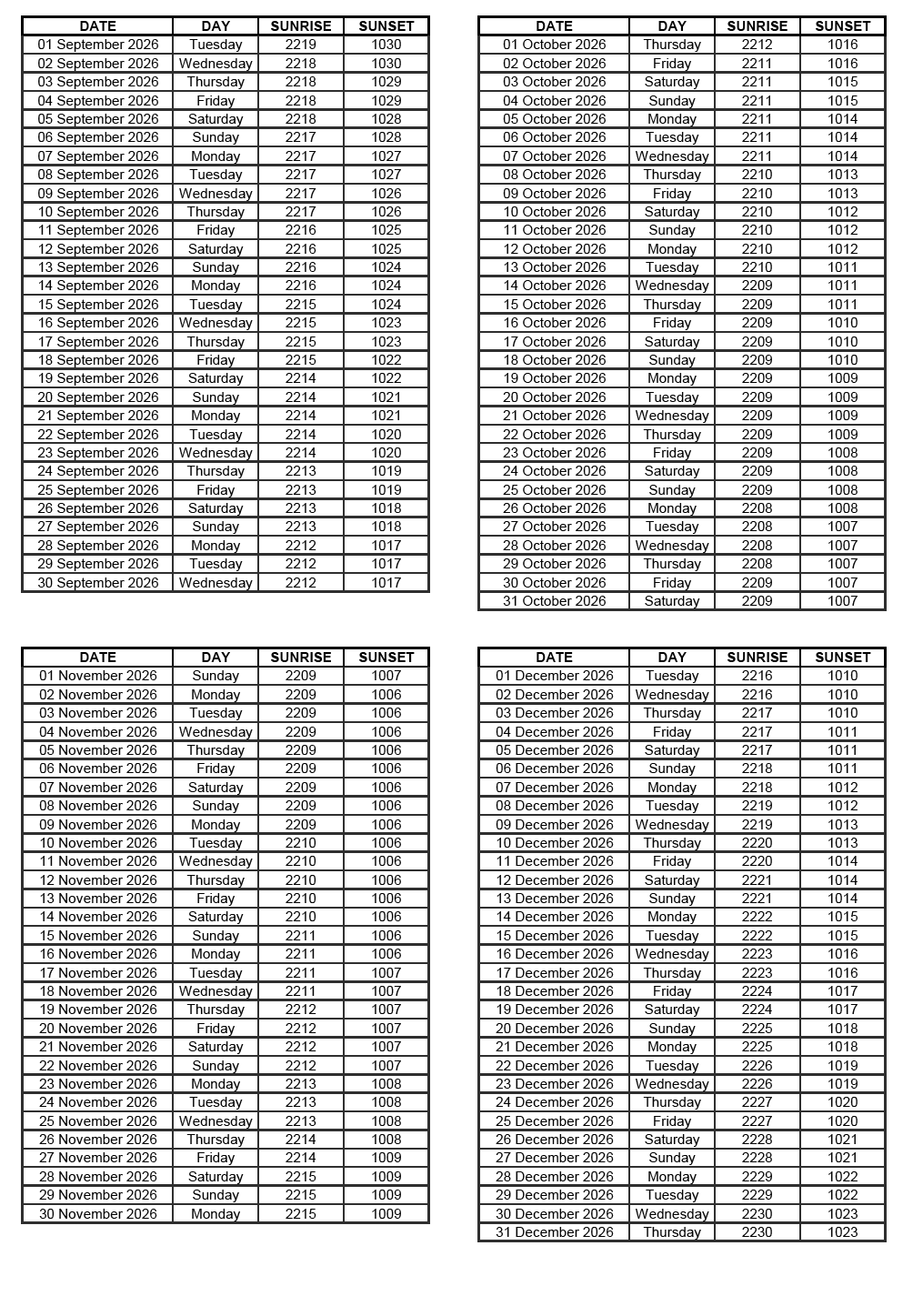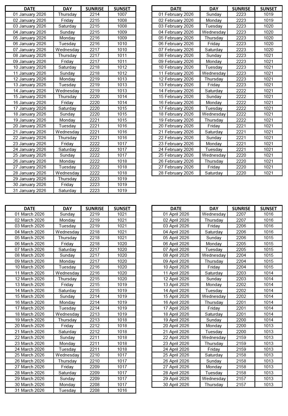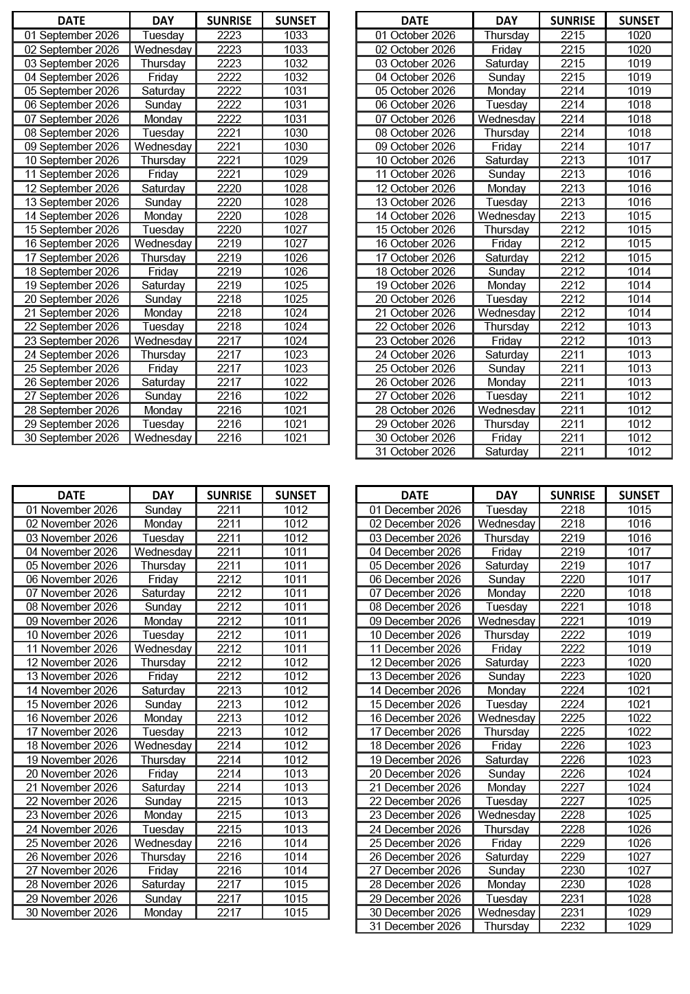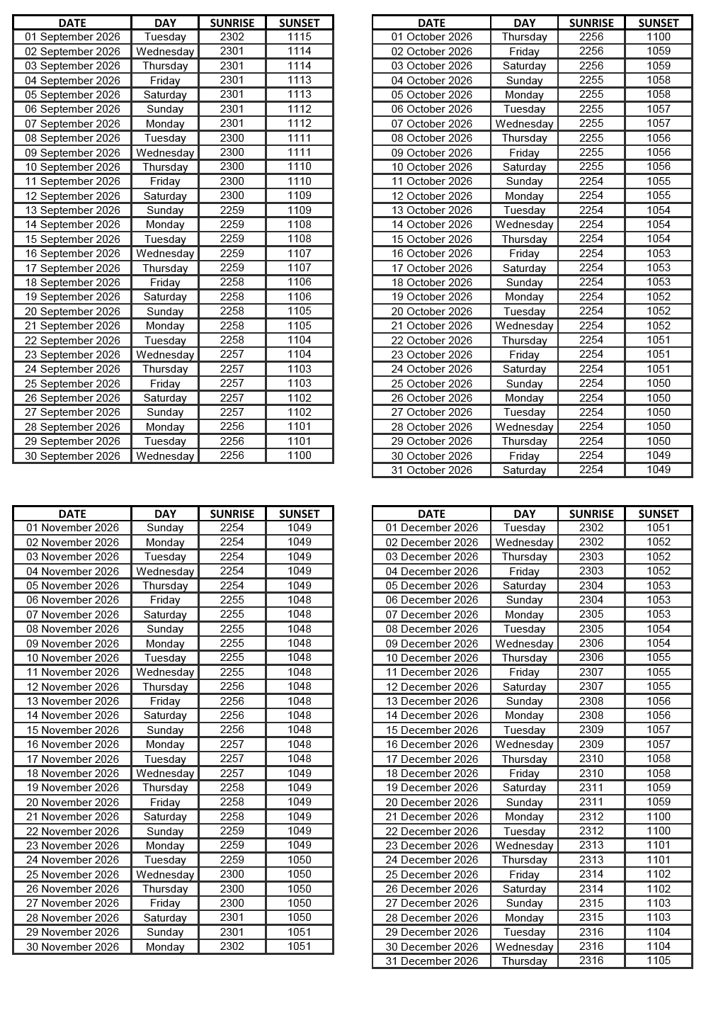 GEN 2.7 SUNRISE/SUNSET TABLES