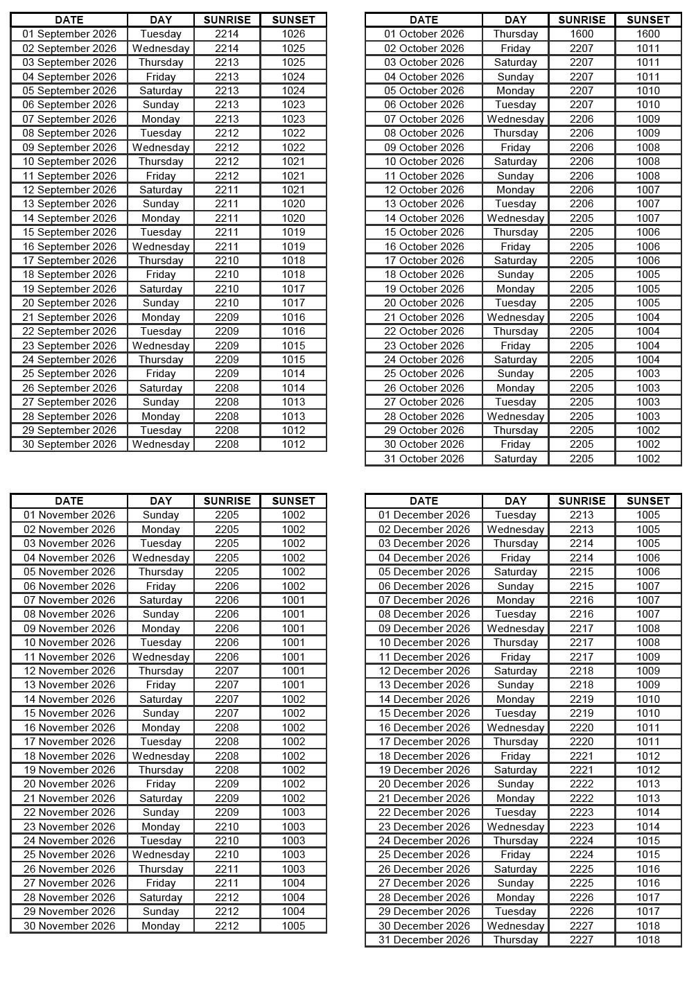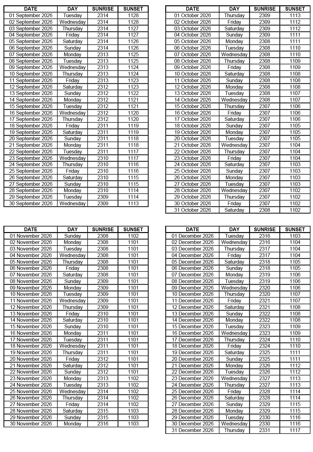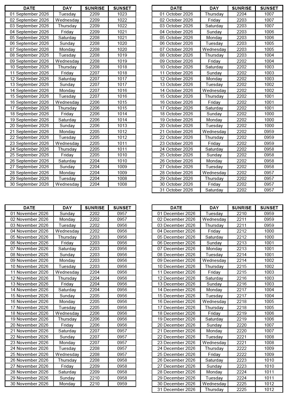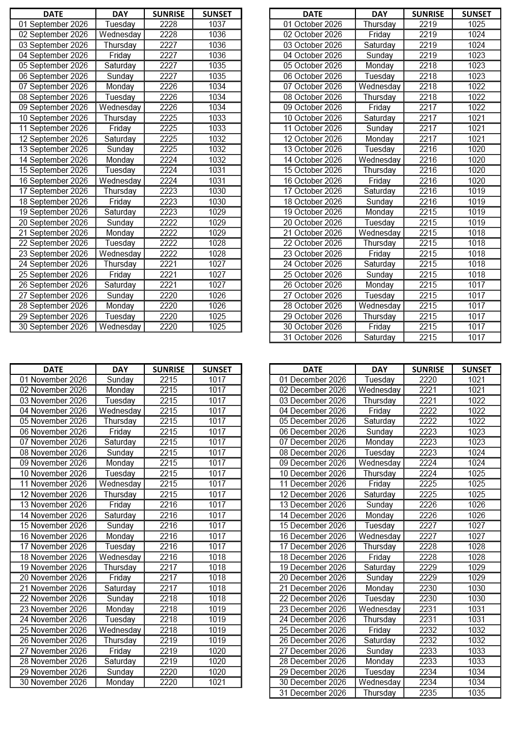 GEN 2.7 SUNRISE/SUNSET TABLES