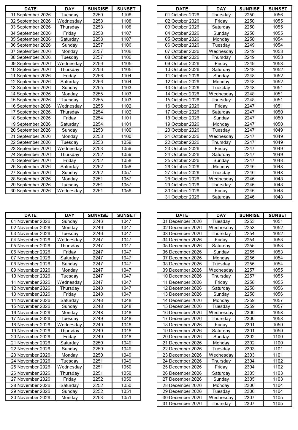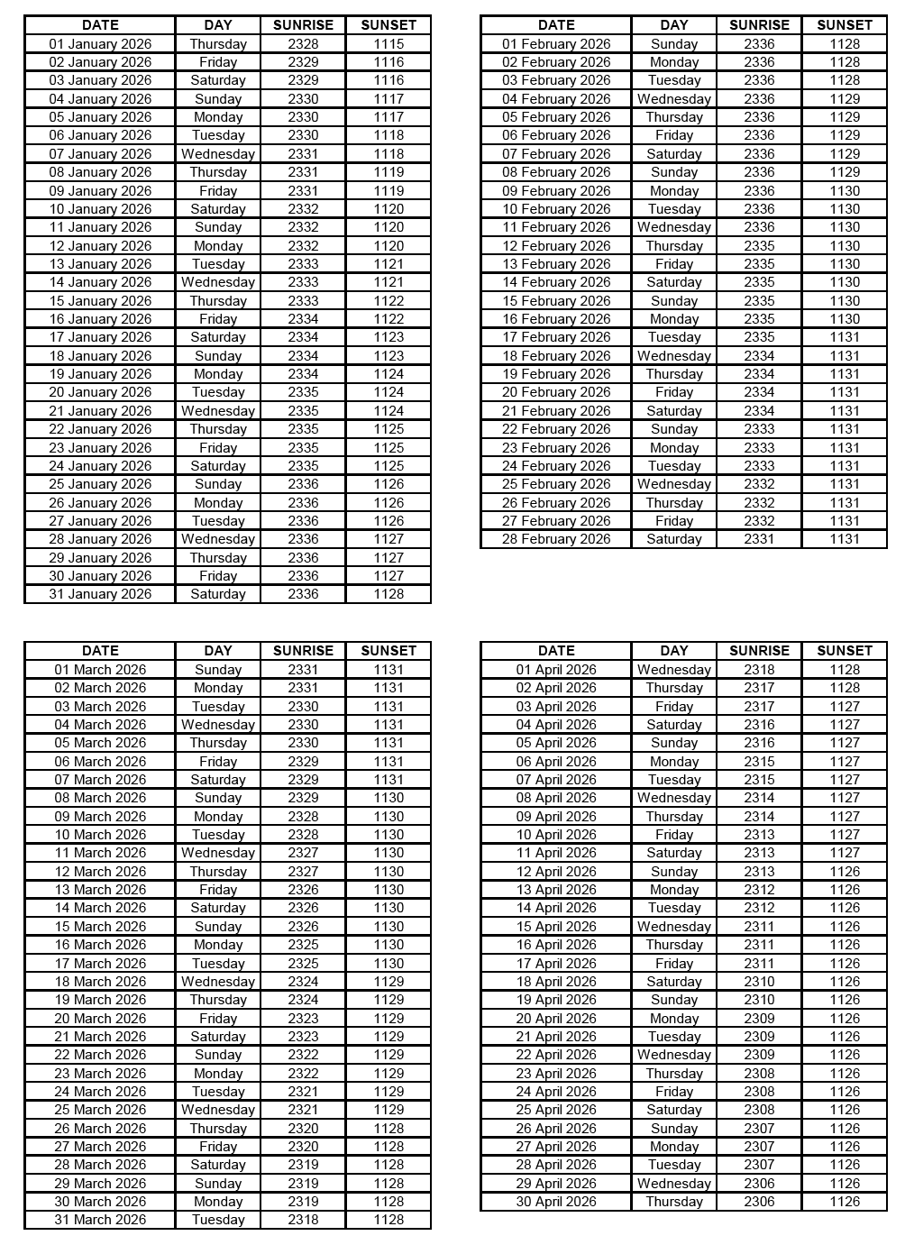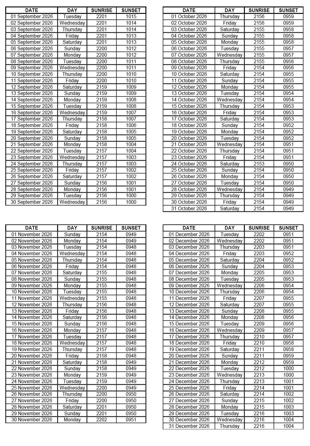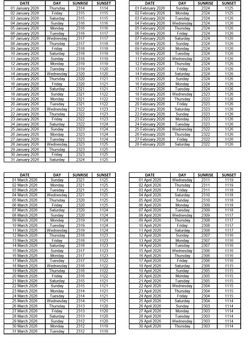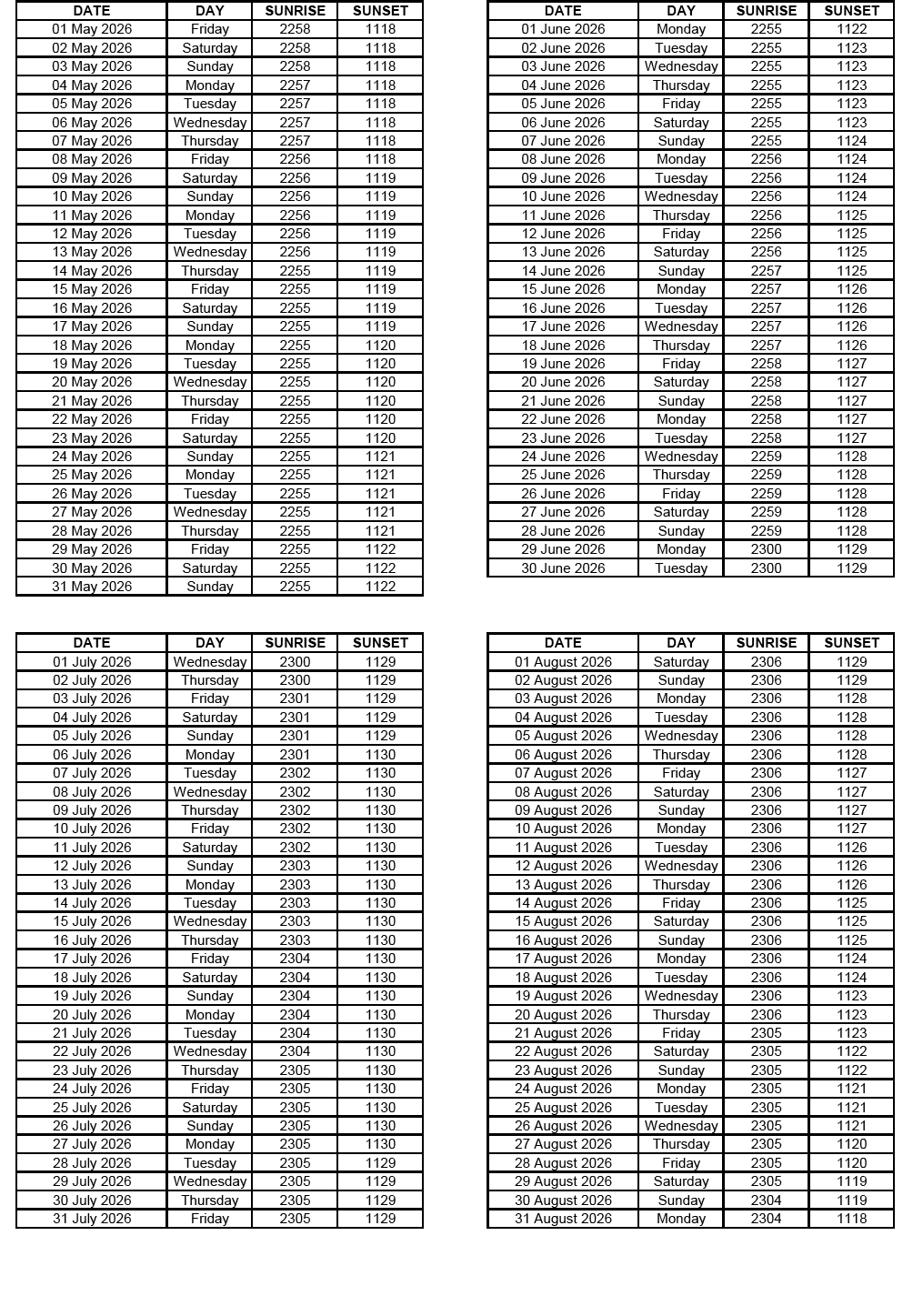 GEN 2.7 SUNRISE/SUNSET TABLES
